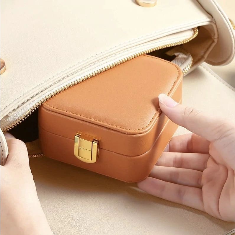 Esta caja de joyas se adapta perfectamente a tu equipaje. Ideal para llevar tus piezas favoritas de viaje y mantener todo organizado sin ocupar espacio.